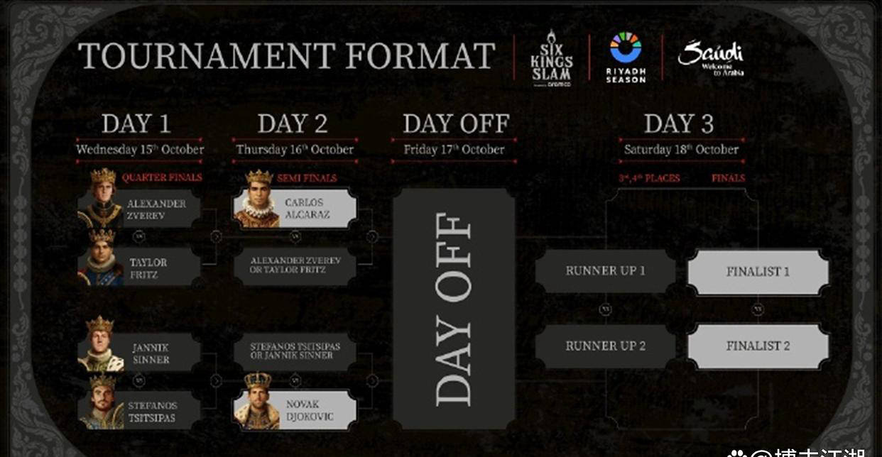 参与比赛的六位高手包括阿尔卡拉兹、德约科维奇、弗里茨、辛纳、西西帕斯和兹维列夫。除了西西帕斯外,其他选手都是世界排名靠前的顶尖选手,他们受邀参加比赛完全情理之内。