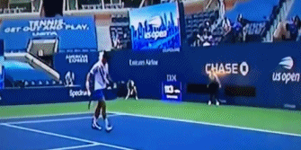 根据比赛录相,在第一盘比赛进行之中,德约在自己发球局被布斯塔破发后,在球场内说不清是故意还是无意的一记击球,竟然击中司线颈部,致使当执女司线当场倒地,随后接受治疗。赛事主裁判现场最终认定德约科维奇违例,被取消美网参赛资格,排名世界第一的小德意外止步本届美网8强。