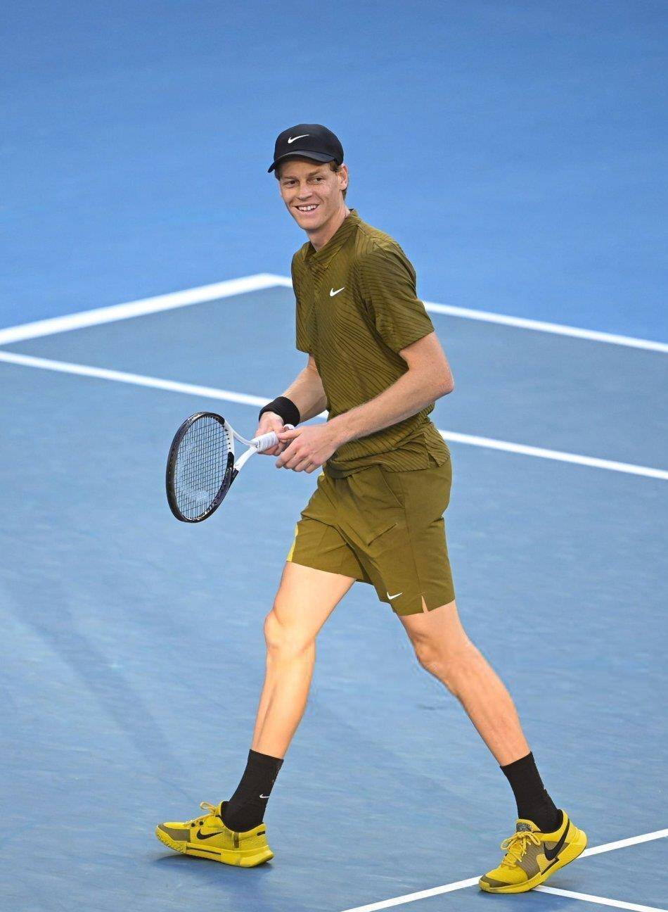 这一数据引发思考:辛纳是否已经正式跻身网球历史最伟大球员的行列? 要知道,他只有24岁,却已经在大满贯赛场创造了多项纪录。 辛纳在2024年澳网半决赛击败德约科维奇,打破后者在澳网2195天的不败金身,随后在决赛逆转梅德韦杰夫,夺得生涯首座大满贯。