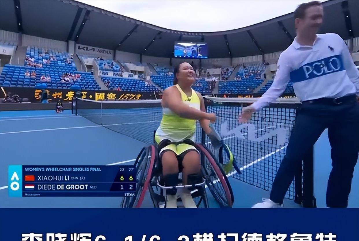 在女单决赛中,她以6-1、6-2的压倒性优势,击败了被誉为“轮椅女皇”的德格鲁特。